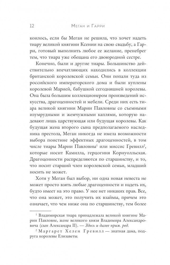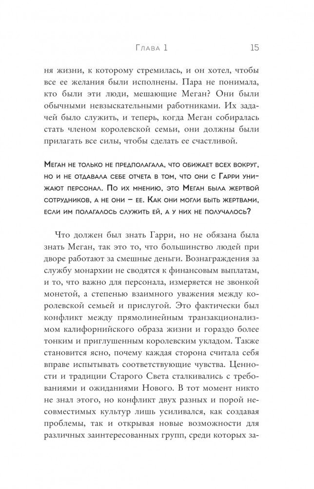Автор книги предсказала все, что происходит с парой, начиная с интервью Опре Уинфри до перечисления компаний, с которыми пара сотрудничает сейчас. Благодаря связям в королевском дворе и знакомствам за океаном, автор детально разбирает скрытые мотивы пары и отвечает на вопросы: смогут ли они сделать большое состояние, откажется ли Меган от своих амбиций — опередить Диану и стать самой известной женщиной в мире, или даже президентом США?