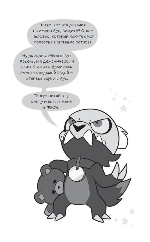 Когда Лус Носеда случайно ступила в портал, ведущий в волшебное измерение Кипящих островов, то обнаружила за ним фэнтезийный мир, где магия, ведьмы и милые короли демонов были реальны! Там уверенная в своих силах девочка-подросток встретила Иду, самую могущественную ведьму островов, и её помощника, Короля, и решила остаться с ними в Доме совы. Ида согласилась принять Лус как свою ученицу, но оттого что девочка не обладала магической силой с рождения, ей пришлось особенно усердно трудиться, чтобы овладеть волшебным ремеслом. С необычными уроками Иды, поддержкой Короля и помощью новых друзей – Эмити, Уиллоу и Гуса, у Лус даже стало получаться. Но никто не говорил, что в мире фэнтези человеку будет легко!