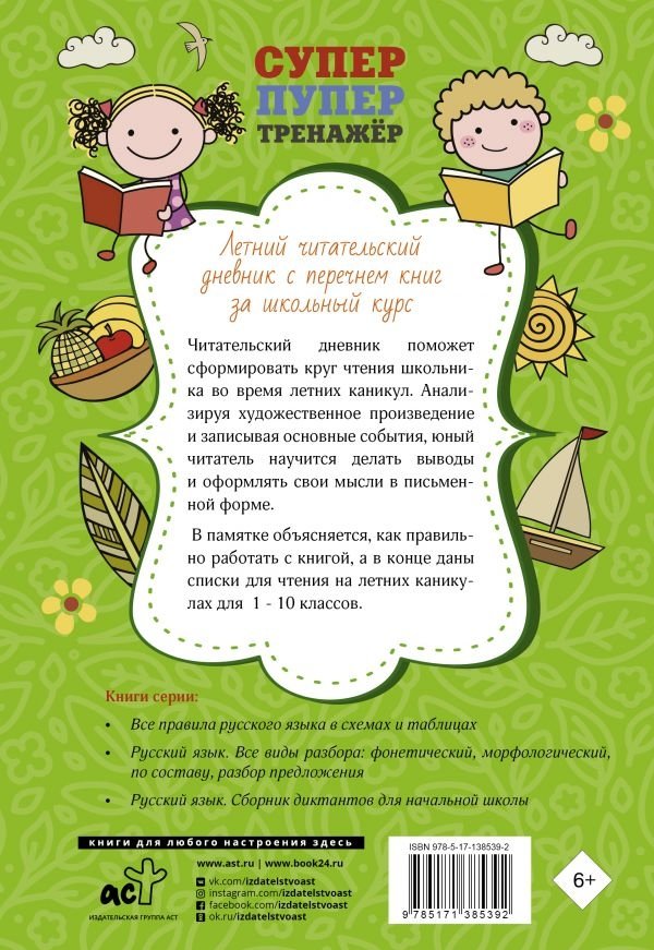 Читательский дневник поможет сформировать круг чтения школьника во время летних каникул. Анализируя художественное произведение и записывая основные события, юный читатель научится делать выводы и оформлять свои мысли в письменной форме.