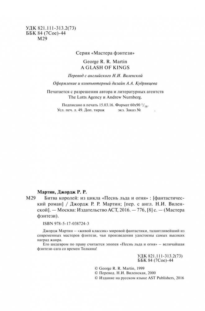 Джордж Мартин. Писатель, очень рано и легко добившийся огромного успеха. Начиная с рассказов и повестей, представлявших собой смелую смесь научной фантастики и «ужасов» (за произведения в этом жанре удостоен двух «Хьюго» и двух «Небьюла»), работал и в «классической» научной фантастике, но впоследствии стал подлинным мастером фэнтези, которого критики ставят наравне с Д.Р.Р.Толкином и Р.Джорданом. Перед вами - знаменитая эпопея «Песнь льда и огня». Эпическая, чеканная сага о мире Семи Королевств. О мире суровых земель вечного холода и радостных земель вечного лета. О мире опасных приключений, тончайших политических интриг и великих деяний. О мире лордов и героев, драконов, воинов и магов, чернокнижников и убийц - всех, кого свела Судьба во исполнение пророчества...