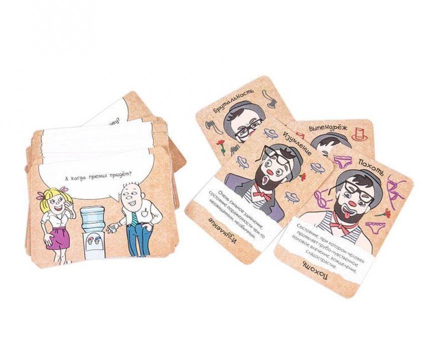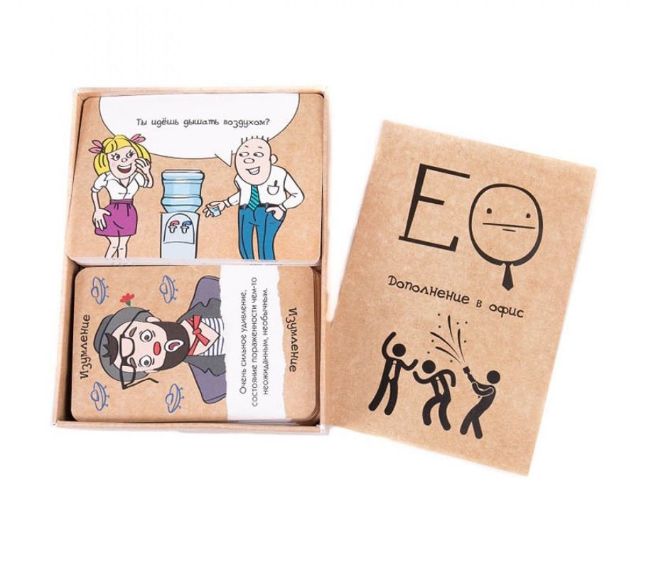 Эта игра хорошо зайдёт и просто в весёлую компанию друзей, даже если никто оттуда в офисе не работал. Эмоции тут повзрослее, чем в базовом "Эмоциональном интеллекте": борзость, выпендрёж, оторопь, брутальность, буйство и ещё много других.
