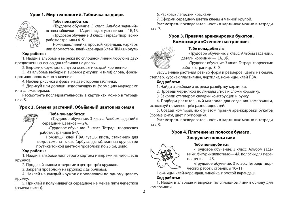 Альбом заданий представляет собой набор материалов для создания изделий на каждом из 35 уроков, предусмотренных учебной программой.