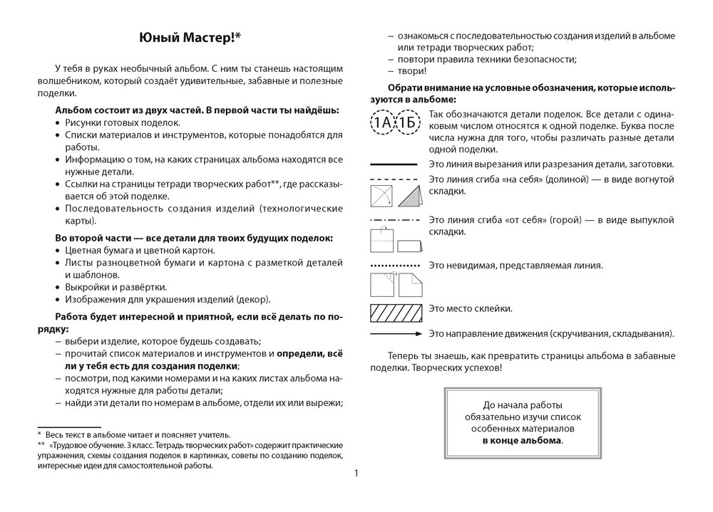 Альбом может использоваться в комплексе с пособием «Трудовое обучение. 3 класс. Журнал учёта знаний на безотметочной основе» (пособие доступно только в электронной версии и представлено для бесплатного скачивания на сайте).