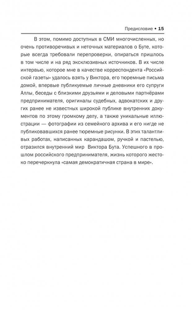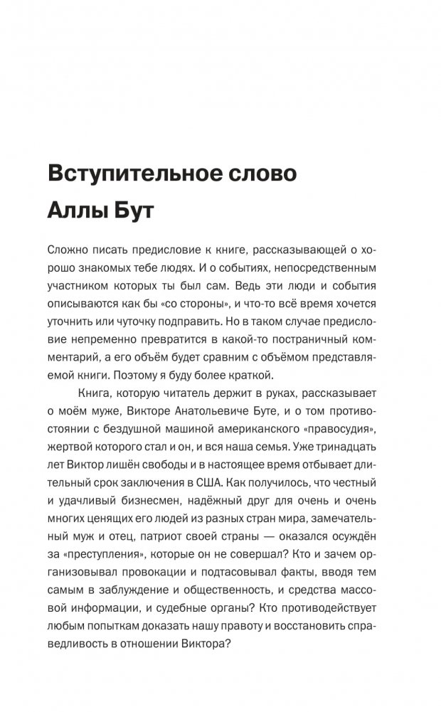 Вновь проанализированные факты истинных причин охоты США за В. Бутом, интервью с ним, его родственниками и знакомыми, уникальные фотографии из семейного архива, письма Виктора из тюрьмы и фрагменты дневников его жены Аллы легли в основу журналистского расследования этого резонансного дела, ставшего крупным международным скандалом.