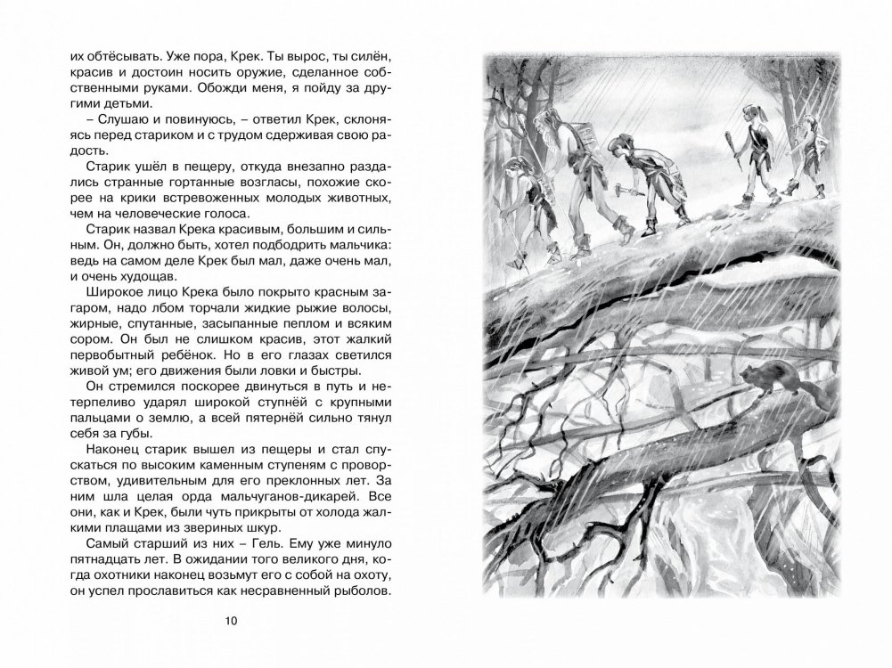 Эта удивительная повесть перенесёт читателя на 25 тысяч лет назад. Научных данных о том периоде крайне мало, но благодаря неудержимой фантазии автора повесть настолько достоверна и убедительна, что читатель словно своими глазами видит мальчика Крека, участвует в его приключениях и от всей души сочувствует ему. В борьбе с голодом, холодом, опасностями Крек выстоял, в борьбе за жизнь он и стал человеком.