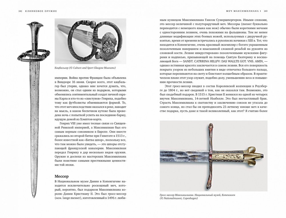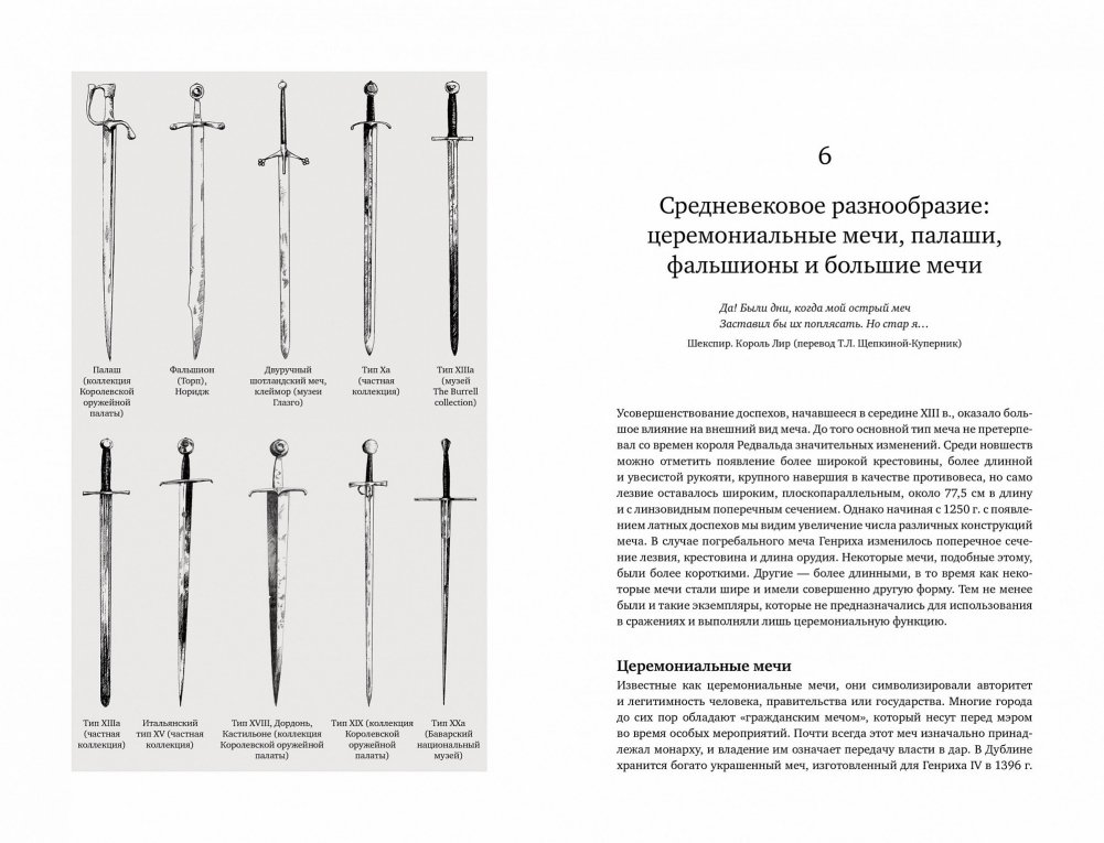 История эволюции клинкового оружия, которое использовали фехтовальщики, — это история огромного семейства его разновидностей, включая хопеши, ксифосы, махайры, кописы, фалькаты, гладиусы, спаты, палаши, фальшионы, полутораручные и двуручные мечи, мессеры, дюссаки, боккэны, рапиры, эстоки, кинжалы, шпаги, а также детали доспехов. В определенном смысле мечи (собирательное понятие) — это произведения искусства, и в книге представлены их лучшие образцы. Авторитетный западный эксперт Майк Лоадс помещает рассказ об этих образцах в широкий исторический контекст, выделяя основные вехи истории войн и дуэлей. Во всей своей грозной красе перед нами предстают египетские, греческие, кельтские и римские мечи, мечи народов севера и крестоносцев, дуэльное оружие, мечи фараона Тутанхамона, короля восточных англов Редвальда, короля Англии Генриха V, императора Священной Римской империи Максимилиана I, самурая Уэсуги Кэнсина, короля Франции Генриха IV, лорда-протектора Англии Оливера Кромвеля, первого президента США Джорджа Вашингтона и, наконец, оружие времен битвы при Ватерлоо и Гражданской войны в США. Неотъемлемая черта повествования — сведения о процессе изготовления мечей и техническом прогрессе, об эволюции искусства фехтования, об изменении стилей и техник, о сферах использования мечей (боевые, траурные, церемониальные, мечи для казни и другие), о символическом значении меча. Издание снабжено множеством роскошных цветных и черно-белых иллюстраций, многие из которых публикуются впервые, глоссарием и указателем и несомненно заинтересует всех, кто увлечен историей оружия и фехтования.