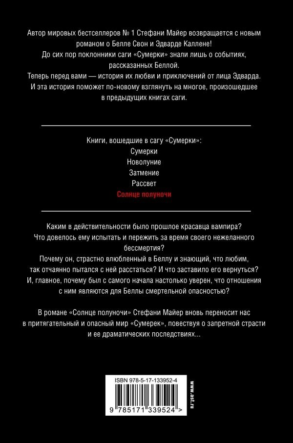 Теперь перед вами — история их любви и приключений от лица Эдварда. И эта история поможет по-новому взглянуть на многое, произошедшее в предыдущих книгах саги.