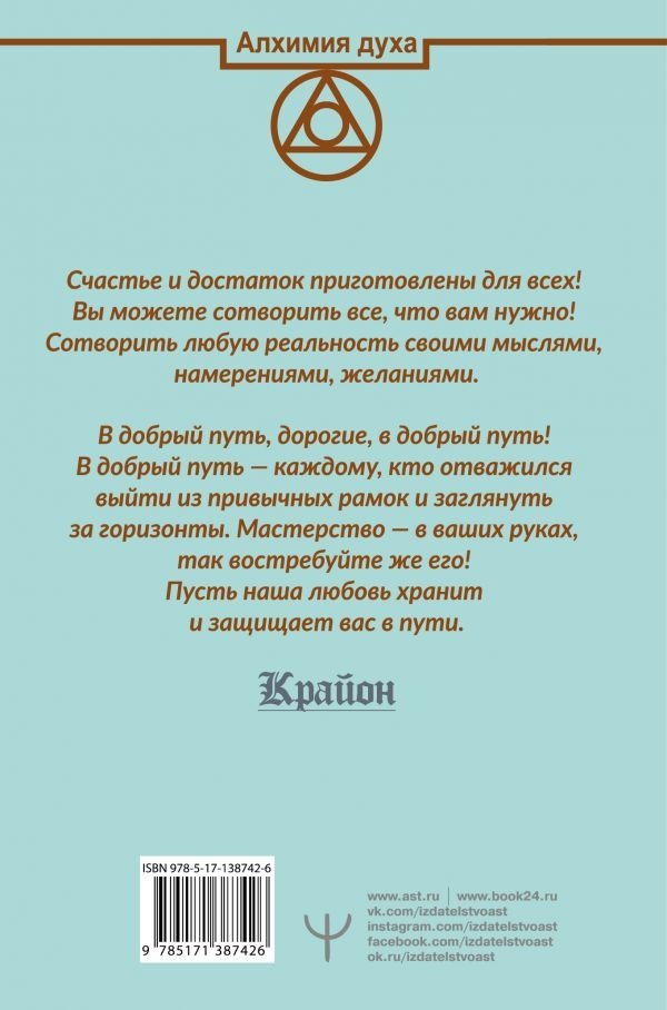 Книга-тренинг Артура Лимана «Крайон. Деньги — это энергия! Научитесь ею управлять» составлена на основе посланий Крайона — духовной сущности, открывающей человечеству путь к духовному росту и обретению достойной, изобильной, благополучной и счастливой жизни в достатке. Практики, предложенные в книге, дают доступ к изобилию Вселенной и учат пониманию духовной и энергетической сущности денег. Божественный дух Крайон напоминает нам один из главных законов Вселенной: счастье, и достаток, и благополучие доступны для всех! Пришло время, когда каждый может жить именно так, как хочет, и получать именно те материальные блага, которые ему нужны. Счастье и достаток приготовлены для всех! Бедный может стать богатым!