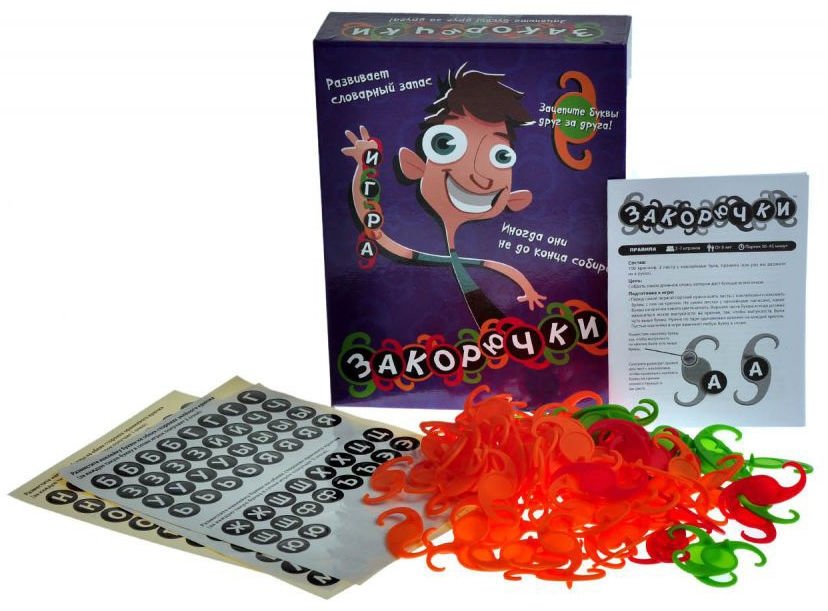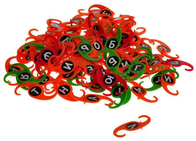 В этой игре нужно составлять слова из букв. Высыпаете все буквы на стол, берете первую, цепляете крючком от нее вторую, поднимаете выше и ищете третью - и так, пока не получится все слово или буквы не упадут обратно! Просто, быстро, весело и очень полезно для развития моторики и словарного запаса.