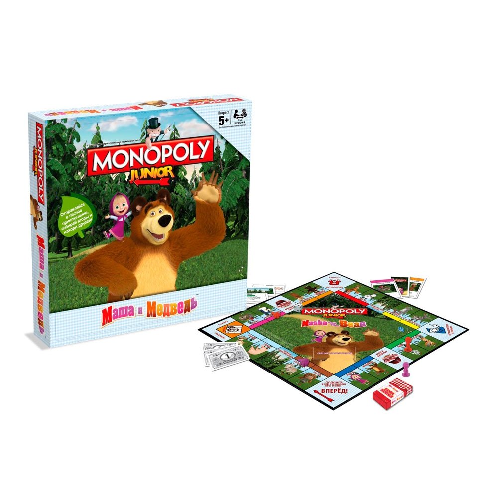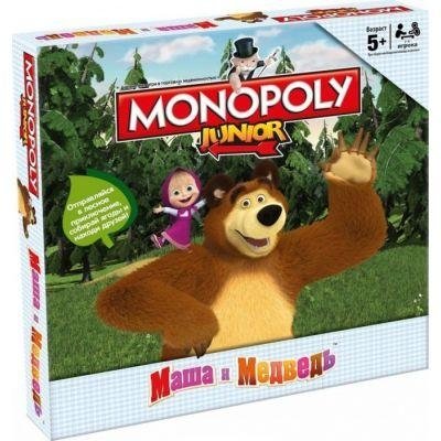 Вы знакомы с девочкой Машей? И с большим и добрым медведем, который вечно страдает от проказ этой девочки? Конечно, да! Герои мультфильма Маша и Медведь теперь в настольной игре Монополия Джуниор: "Маша и Медведь". Игра рассчитана на игроков на 2-4 игроков от пяти лет. Всё оформление сделано с использованием известных персонажей.