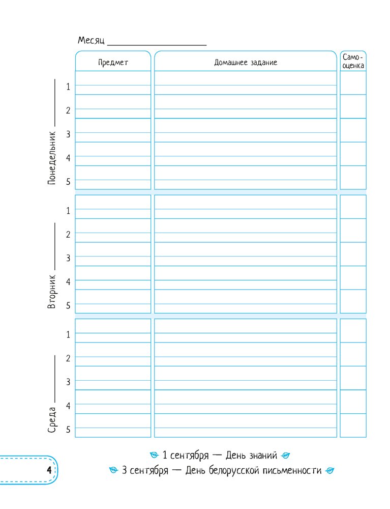 Помимо расписания уроков и домашних заданий, в «Ежедневнике» можно записать дополнительные мероприятия на каждую неделю, планы на каникулы, в отдельные разделы – замечания, благодарности, рекомендации учителя. В конце издания приводятся правила заполнения и ведения «Дневничка».