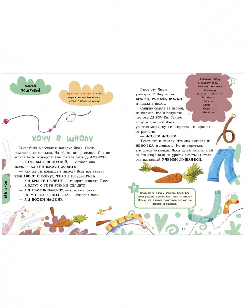 Несколько коротких увлекательных рассказов не вызовут сложностей у начинающих читателей. Интересные сюжеты и яркие иллюстрации заинтересуют ребенка, а дополнительные задания, вопросы и игры помогут взрослым проверить, как ребенок понял содержание, разовьют эмоциональный интеллект, творческие способности, писательские навыки, а также помогут закрепить полученные умения. Юный ученик с восторгом погрузится в изучение текстов, получив задание, например, угадать только по выделенным словам, о чем будет рассказ.