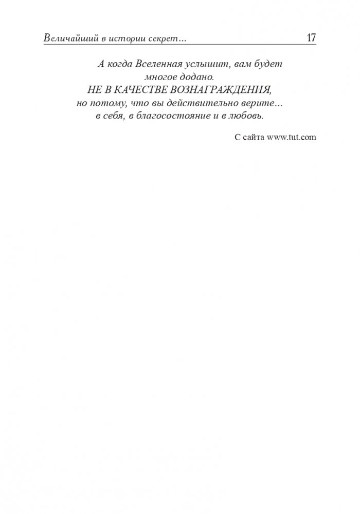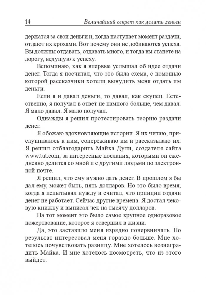 Если вы хотите научиться делать по-настоящему большие деньги, то должны поступать так же, как богатейшие люди планеты поступали во все времена. Как именно? Отдай время — и выиграешь время. Отдай вещь — и получишь вещь. Полюби — и полюбят тебя. Дай денег — и получишь деньги. Как только вы начнете соблюдать хотя бы одно из этих нехитрых правил, ваше материальное положение сразу же улучшится. О том, как этого добиться, подробно рассказывает в своей книге Джо Витале.