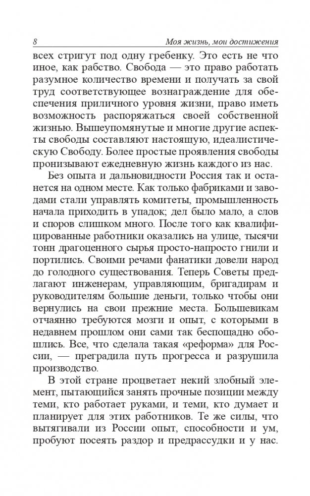 В 1911 году Генри Форд изменил мир. Он вошел в историю как изобретатель конвейера и один из самых честных миллионеров. Форд ошибался, терял состояние и богател, судился за патенты, выигрывал и проигрывал тяжбы, он вытащил Америку из экономической депрессии и стал символом самой мощной экономики в истории человечества. Идеи и методы организации производства, описанные в этой знаменитой книге, внедрены в деятельность тысяч предприятий и заслуживают внимания каждого, кто создает свой бизнес.