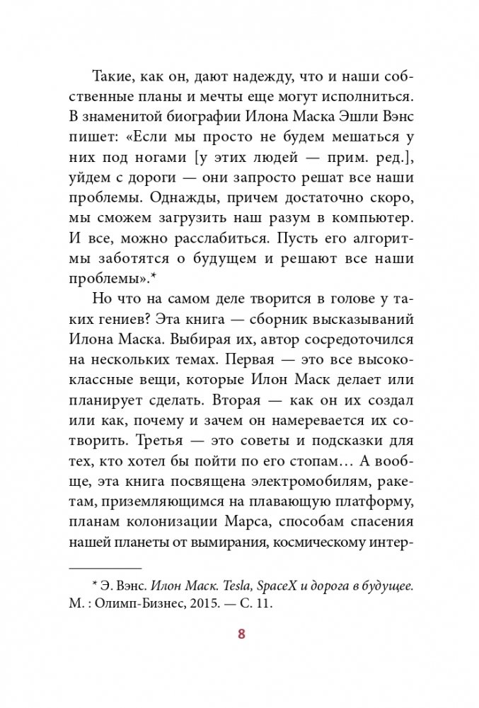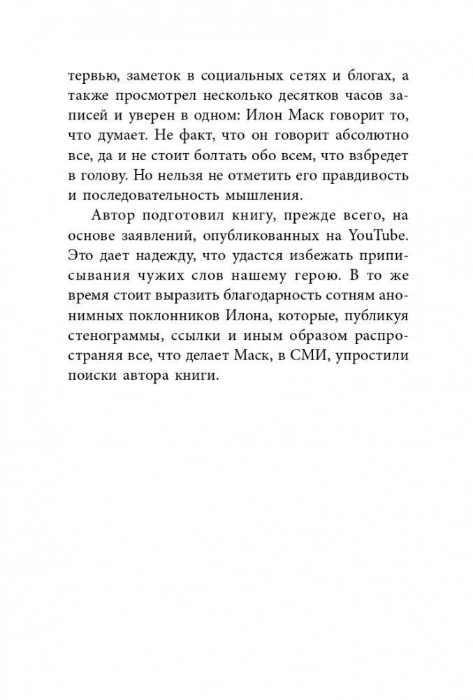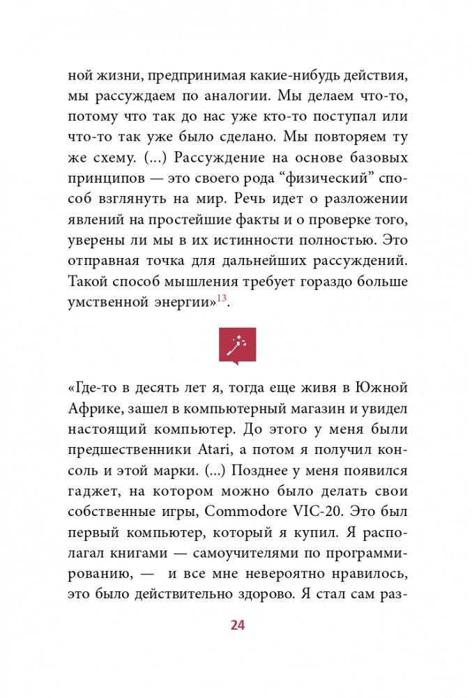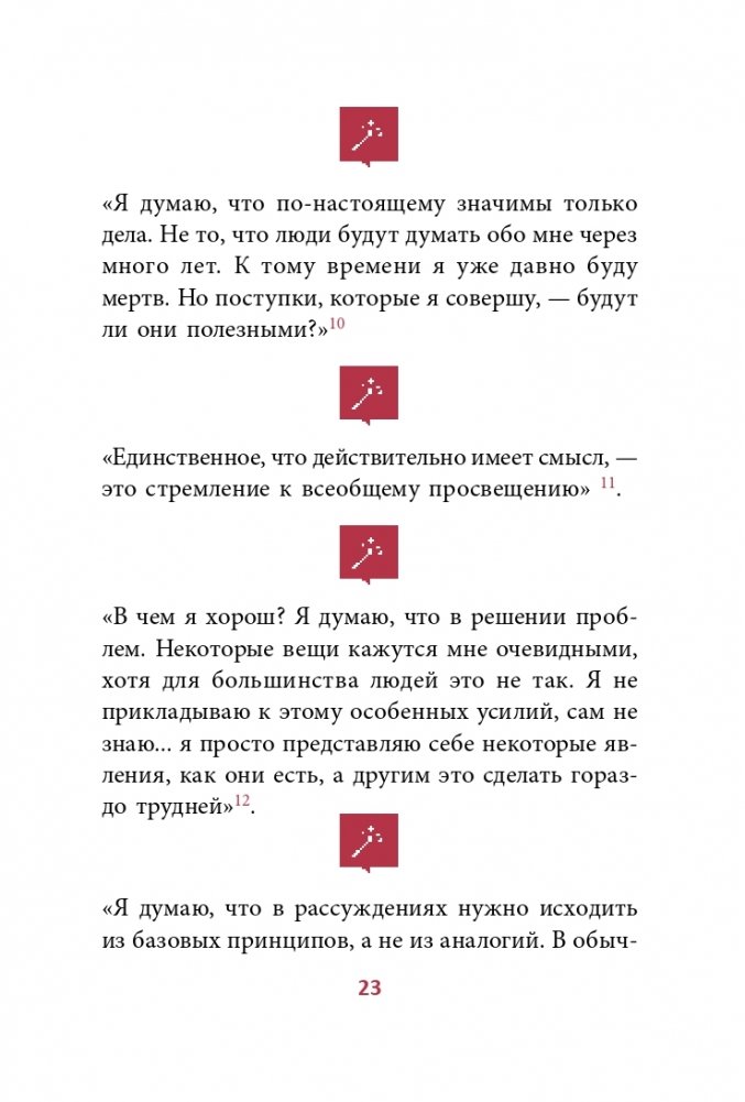 Узнайте, как нужно мыслить, чтобы мыслить как Илон Маск. Он расскажет вам об этом сам, от первого лица. Прочитав книгу, вы дважды подумаете, прежде чем сказать: «Нет, у меня не получится».