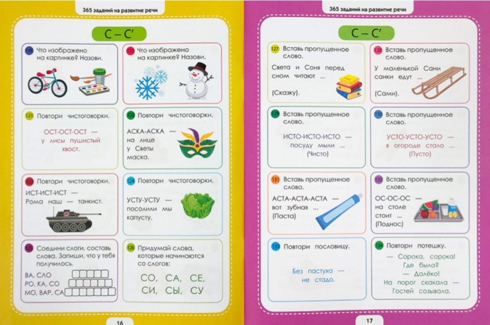 Рабочая тетрадь "Логопедические упражнения" из серии "365 развивающих заданий" – это комплексная подготовка к школе для самых любознательных малышей. Ровно 365 заданий, которые помогут ребёнку научиться выговаривать сложные звуки и слова, уверенно и спокойно выражать свои мысли. Мы специально работали над структурой и оформлением тетради: задания чередуются по сложности и смыслу, страницы оформлены в ярких привлекательных цветах. Мы сделали всё, чтобы ваш ребёнок с удовольствием познавал мир, готовился к школе и развивался. Он будет с радостью возвращаться к занятиям снова!