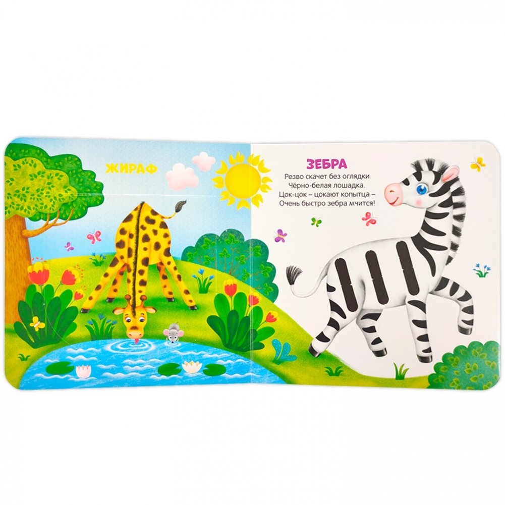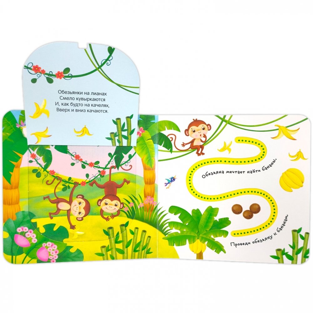 Книга "Весёлый зоопарк" из серии "Первая книга малыша" знакомит маленького читателя с экзотическими животными, которых не встретишь в нашей стране. На ярких страницах интерактивной книги веселятся жирафы, слоны, обезьянки, крокодилы. Ребёнок сможет заглянуть под окошки-сюрпризы, провести пальчиками по тактильным дорожкам. Сочные краски и добрые иллюстрации не только оставят множество положительных эмоций у малыша, но и помогут запомнить прочитанное.
