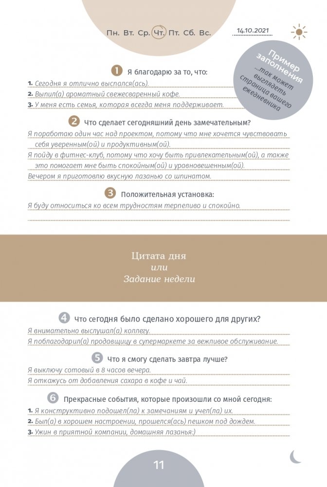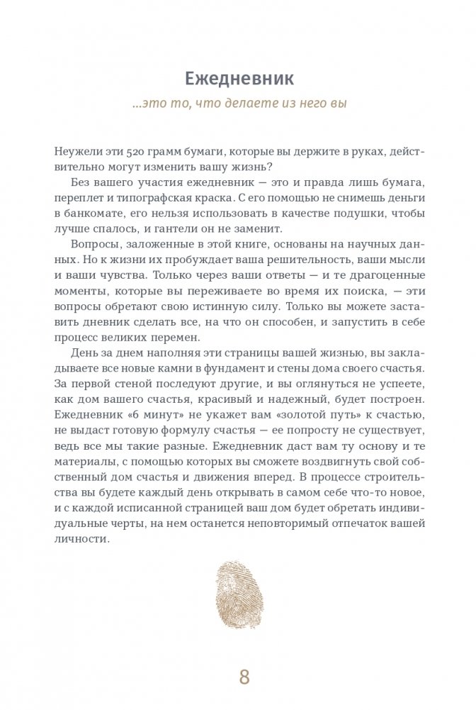 Подойдет тем, кто уже знаком с первым изданием и хочет продолжить заполнять ежедневник в новом формате, а также тем, кто только начинает знакомиться с Принципом 6 минут®.