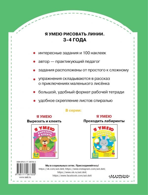 В тренажёре «Я умею рисовать линии. 3-4 года» собраны интересные задания, разработанные педагогами-практиками. Задания подобраны так, что ребёнок, пошагово, от простого к сложному, учится ориентироваться на листе бумаги, тренирует координацию «глаз-рука» и мелкую моторику. Упражнения связаны единой темой – приключениями маленького лисёнка. Благодаря интересным сюжетам и постепенному усложнению заданий, ребёнок, играя, освоит навыки, необходимые для подготовки к письму и почувствует уверенность в своих силах.