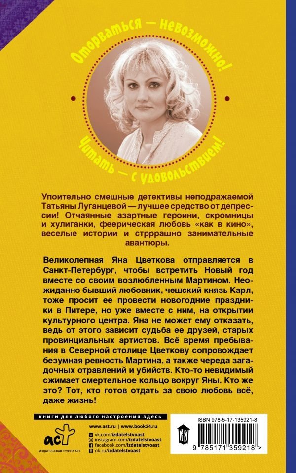 Великолепная Яна Цветкова отправляется в Санкт-Петербург, чтобы встретить Новый год вместе со своим возлюбленным Мартином. Неожиданно бывший любовник, чешский князь Карл, тоже просит ее провести новогодние праздники в Питере, но уже вместе с ним, на открытии культурного центра. Яна не может ему отказать, ведь от этого зависит судьба ее друзей, старых провинциальных артистов. Всё время пребывания в Северной столице Цветкову сопровождает безумная ревность Мартина, а также череда загадочных отравлений и убийств. Кто-то невидимый сжимает смертельное кольцо вокруг Яны. Кто же это? Тот, кто готов отдать за свою любовь всё, даже жизнь!