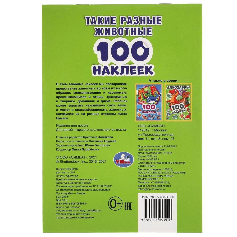 Альбом наклеек "Такие разные животные" (100 наклеек)