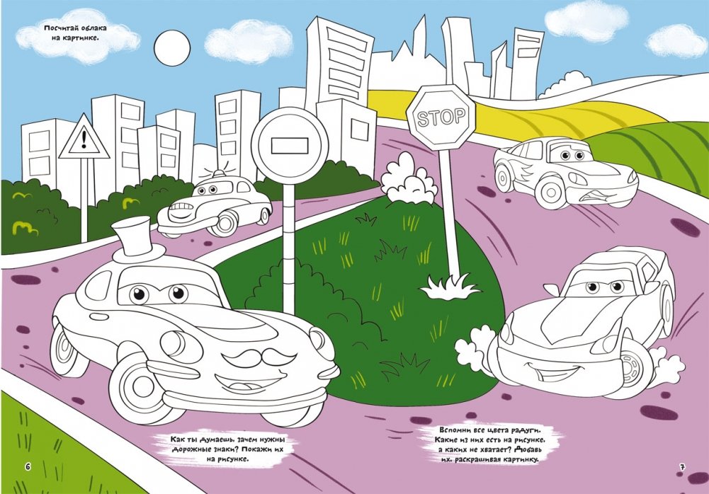 Первая цветная раскраска с развивающими заданиями. Рисуем машинки