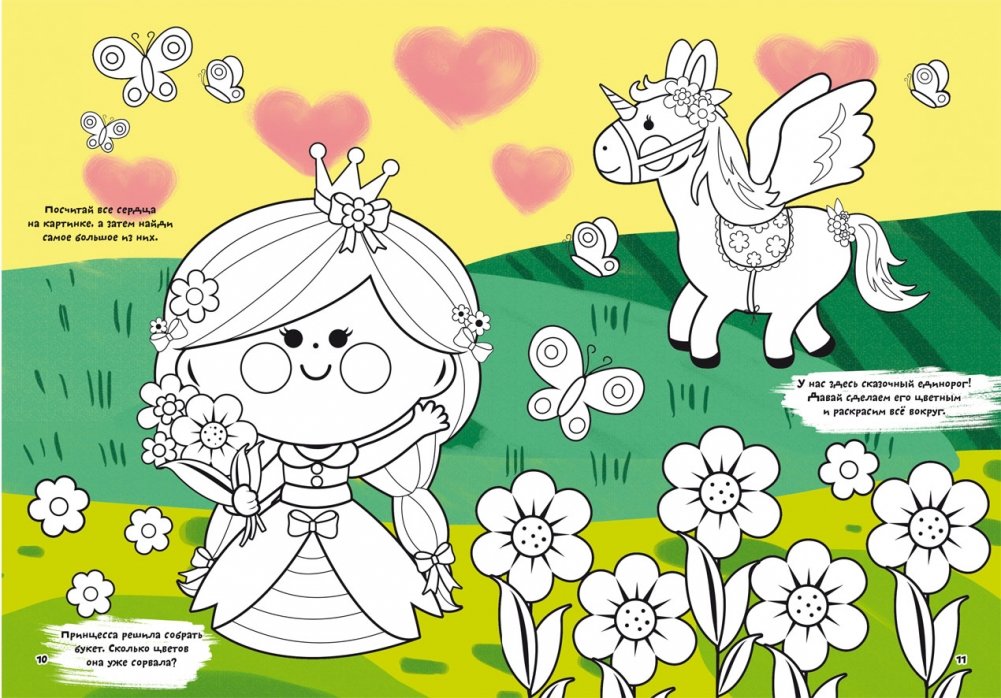 Первая цветная раскраска с развивающими заданиями. Рисуем принцесс