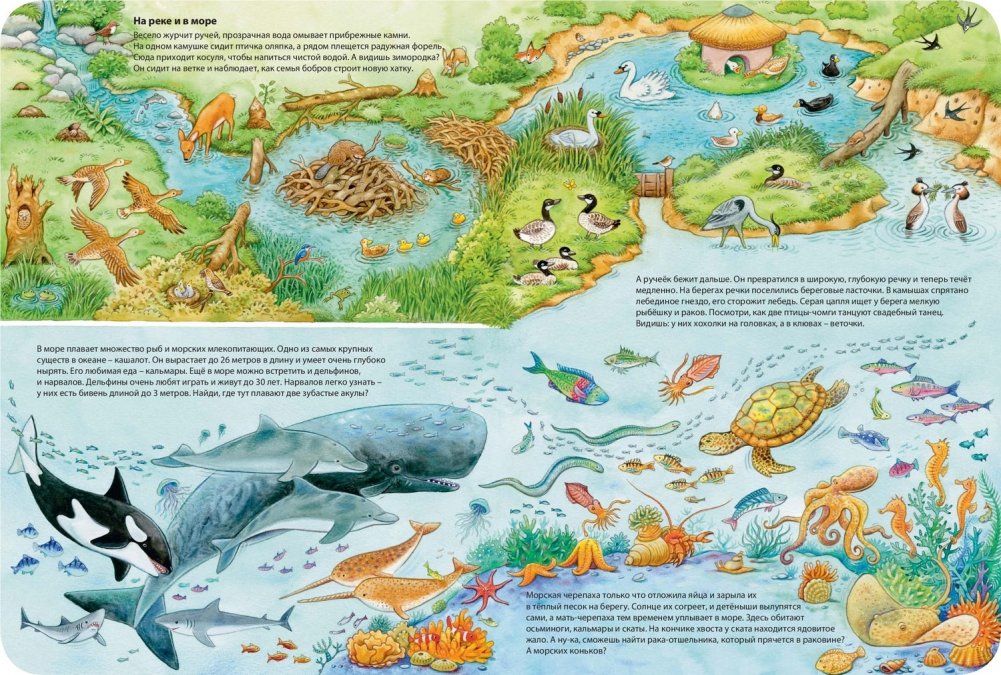 Сколько удивительных животных в этом мире! В лесу, на лугу, у реки, в глубинах морей и океанов, в жарких тропических лесах и саваннах, среди бескрайних льдов - везде кипит жизнь! Рассмотри внимательно красочные, полные занятных деталей страницы этого виммельбуха. В нем спряталось более 350 разных животных из всех уголков нашей планеты!