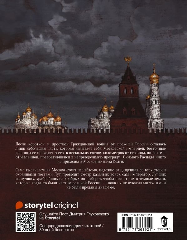 После короткой и яростной Гражданской войны от прежней России осталась лишь небольшая часть, которая называет себя Московской империей. Восточные границы ее проходят всего в нескольких сотнях километров от столицы, по Волге — отравленной, превратившейся в непреодолимую преграду. С самого Распада никто не приходил в Московию из-за Волги.