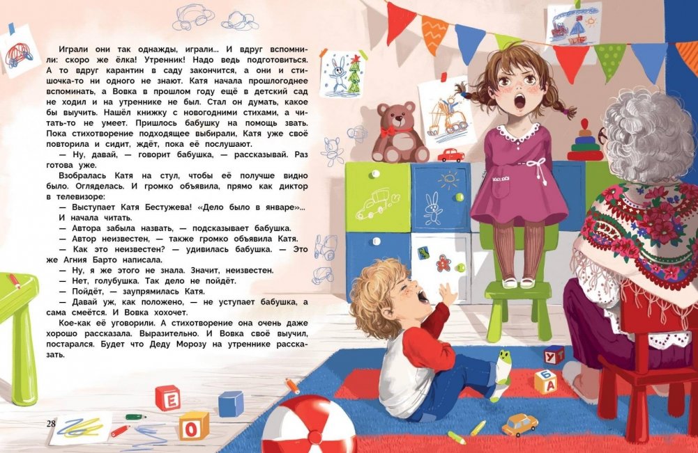 Хорошо хоть бабушка с двоюродной сестрой Катей приехали. Вот началось веселье! Они и кормушку для птиц смастерили, и стихи к новогоднему утреннику выучили, и подарки всем подготовили, и письмо зайцам написали. Да-да, зайцам! А ты думаешь, что подарки под елку Дед Мороз приносит? Теперь остается узнать - умеют ли зайцы читать...