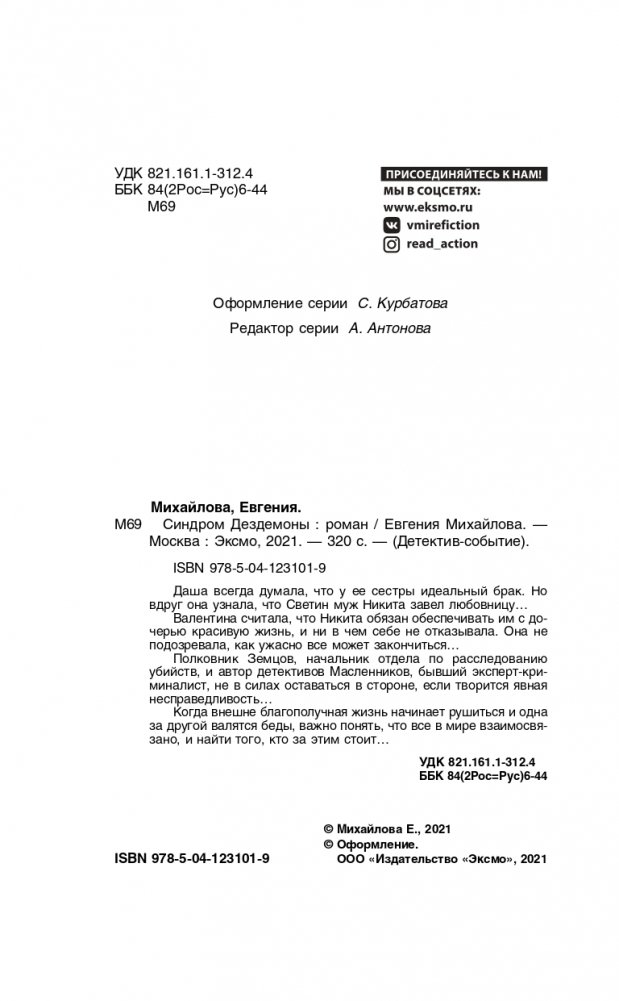 Долгожданный новый остросюжетный роман Евгении Михайловой в серии «Детектив-событие» — «Синдром Дездемоны»! Следствие вновь ведут полковник Земцов, начальник отдела по расследованию убийств, и автор детективов Масленников, бывший эксперт-криминалист.