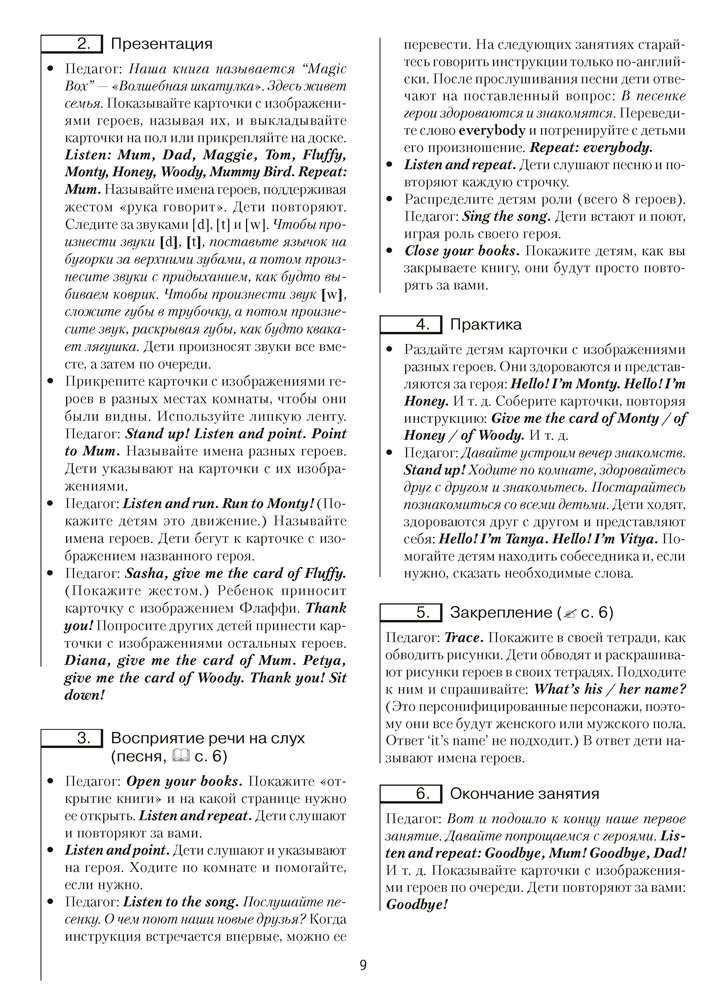 Учебно-методическое пособие является составной частью учебно-методического комплекса серии «Волшебная шкатулка», который включает также учебное наглядное пособие, учебное наглядное пособие (рабочую тетрадь), аудиоприложение и набор тематических карточек. Аудиоприложение и набор тематических карточек представлены на нашем сайте.