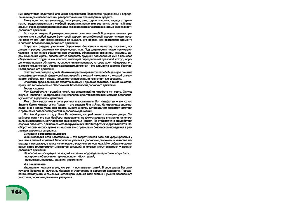 Формат энциклопедии позволяет многократно возвращаться к уже пройденному материалу для его закрепления и «забегать вперед» для формирования у обучающихся целостной картины дорожного движения и его организации, а не фрагментального воспроизведения отдельных дорожно-транспортных ситуаций и пунктов Правил дорожного движения.