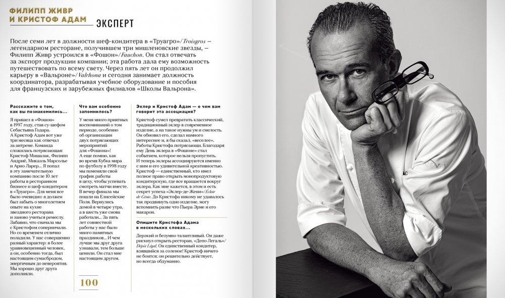 Этот объемный фолиант, посвященный эволюции (а, точнее сказать - "революции") классических французских пирожных из заварного теста, включает свыше 200 рецептов Кристофа Адама за прошедшие 20 лет. Сегодня многие рецепты этого знаменитого парижского шефа разошлись по кондитерским всего мира. И теперь мы считаем разнообразие эклеров как само собой разумеющееся. Но именно благодаря Кристофу Адаму это и произошло! Не зря журналисты, в свое время, окрестили шеф-кондитера "королем эклеров".