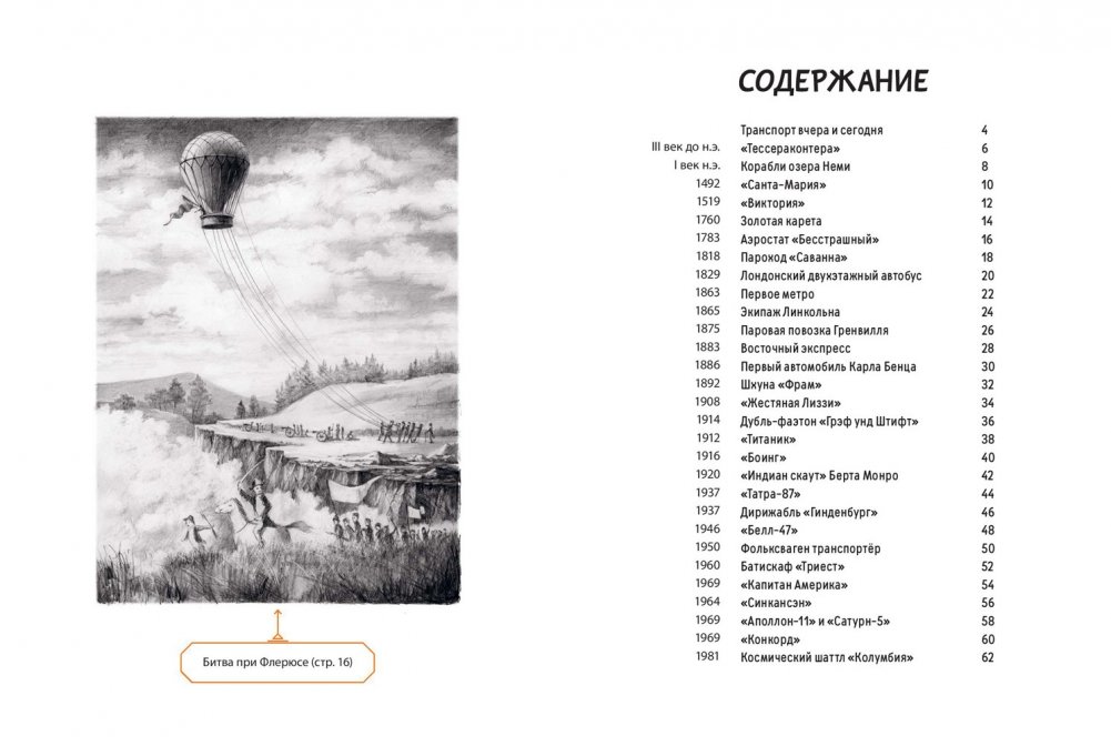 Все великие путешествия, все изобретения и открытия начинаются с чьей-то мечты. Задолго до того, как в космос отправился первый пилотируемый корабль «Восток–1» с Юрием Гагариным на борту, какой-то неизвестный чудак и мудрец изобрёл колесо. Мы не знаем, когда это произошло. Однако с той самой минуты начался отсчёт истории мирового транспорта. Её страницы многое могут поведать о нашей цивилизации. Кареты и поезда, корабли и подводные лодки, батискафы и воздушные шары, дирижабли и вертолёты – за всем этим стоят человеческие судьбы, ошибки и триумфы. Эта книга с великолепными иллюстрациями Мартина Содомки приоткрывает для читателей дверь в удивительный мир техники, созданной человеческим гением.