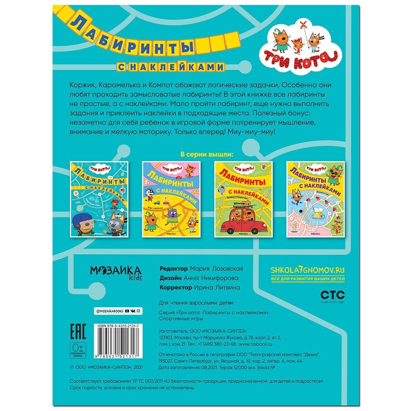 Три кота. Лабиринты с наклейками. Спортивные игры
