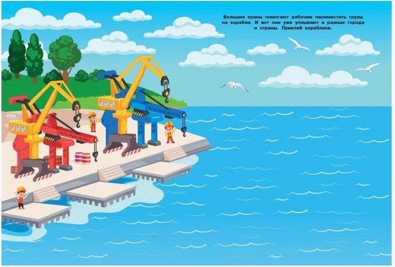 Хочешь узнать, какой бывает водный транспорт? Тогда приглашаем тебя на прогулку по реке. Тут можно увидеть грузовые корабли, яхты, парусники, прогулочные кораблики, катера и лодки. А с нашими наклейками будет еще интереснее. Наклейки многоразовые, поэтому можно придумывать разные истории и приклеивать их снова и снова. Фантазируй и играй!