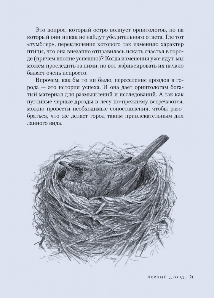 Птицы завораживают людей не только из-за мечты о полетах и нашей тяги к свободе и легкости, но и благодаря способности видеть то, что не улавливает глаз человека, своему яркому оперению, удивительному искусству пения и стремительным пируэтам в воздухе. Птицы с давних времен упоминаются в сказках, сагах и баснях, становятся героями народных примет, вдохновляют ученых и творцов. Мы встречаем и слышим их повсюду — в бетонных джунглях больших городов и в первозданной сельве, в загородных садах и на морских курортах. Орнитолог Ульрих Шмид рассказывает о 32 видах птиц — как редких и малоизвестных, так и широко распространенных. Он пишет об их перьях и окрасе, перелетах и миграциях, токовании и высиживании птенцов, зрении и слухе, а также о способности к адаптации.