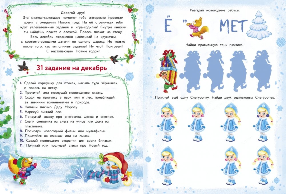 Ваш малыш с нетерпением ждет Нового года? Эта книжка с плакатом, наклейками, игрой-ходилкой и увлекательными заданиями поможет сделать ожидание любимого праздника еще более интересным и сказочным!