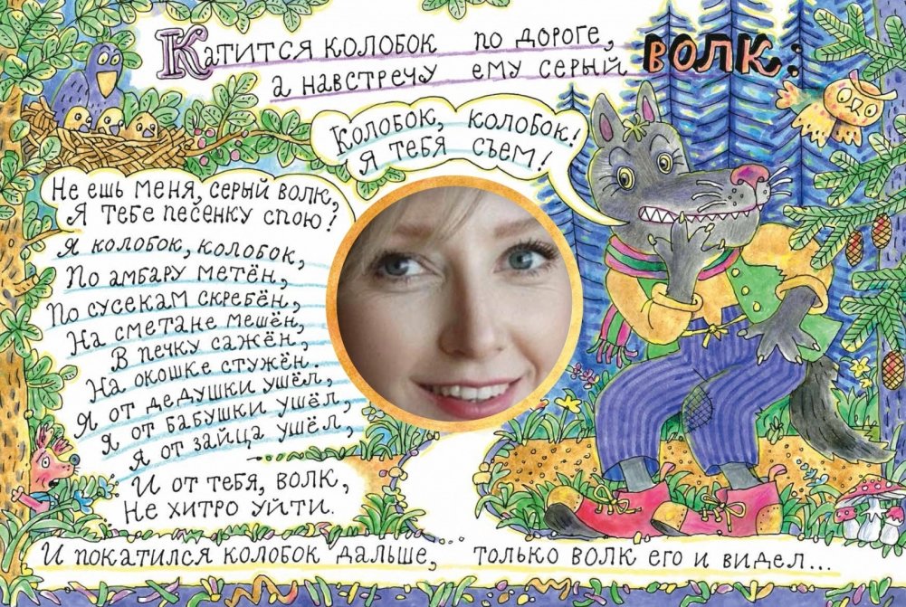 Ими будете вы - мама, папа, бабушка или другой взрослый, который читает ребёнку. Что для этого нужно? Просто подставьте в отверстие своё лицо и спойте весёлую песенку колобка! С нашим театром для этого не понадобятся костюмы и сложные декорации - все есть на страницах книжки-театра.