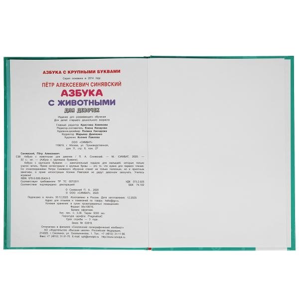 Книга с крупными буквами «Пётр Синявский. Азбука животных для девочек (в стихах)» ТМ «УМка» превратит обучение в увлекательную игру: