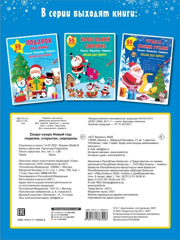 Книжка-мастерилка «Скоро, скоро Новый год: поделки, открытки, сюрпризы» — это отличная возможность своими руками сделать для родных и друзей праздничные сюрпризы: смастерить гирлянды и ёлочные украшения, придумать необычные новогодние открытки, вырезать снежинки. И конечно, каждый постарается написать письмо Деду Морозу и Снегурочке, расскажет о своих мечтах — и чудо обязательно произойдёт!
