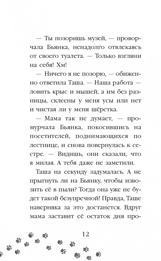 Стеречь музейные экспонаты от крыс и мышей по ночам - это настоящая кошачья работа. Таша и Питер, два котёнка, хотят как можно скорее стать взрослыми и тоже важно обходить гулкие пустые залы, раскланиваясь с ночным сторожем. Но вот незадача - кто-то шуршит вкусным в сумке охранника! Этот кто-то испортит репутацию всем кошкам музея - человек подумает, что его ужин утащили крысы! Котята должны непременно разобраться и восстановить справедливость!