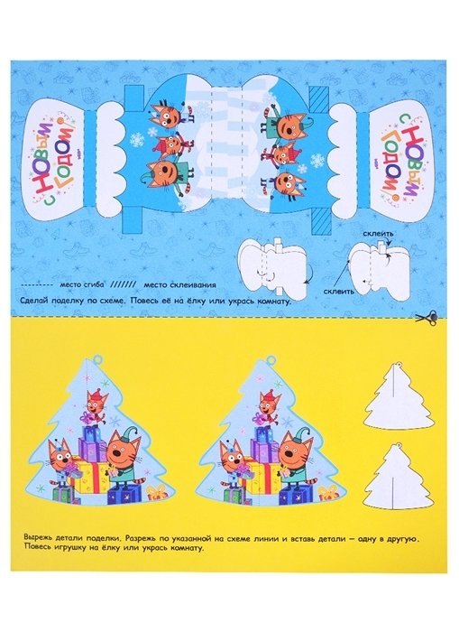 Наполните предновогодние две недели праздничным настроением, приключениями и волшебством вместе с любимыми героями мультсериала "Три кота"! Повесьте плакат-ёлочку, положите в конверт карточку с заданием и наклейку с сегодняшней датой. Выполняя по одному заданию каждый день, вы с малышом напишете письмо Деду Морозу, сделаете множество поделок для украшения ёлки или дома, выучите зимнее стихотворение и весело проведёте время вместе. Поощряйте ребёнка небольшими сувенирами, фруктами или сладостями за выполненные задания. Счастливого нового года!