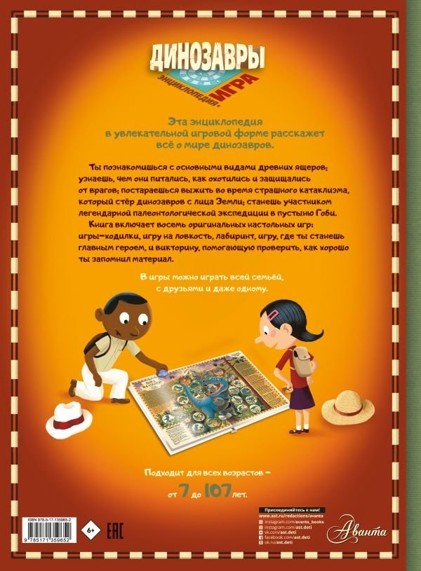 Ты познакомишься с основными видами динозавров; узнаешь, чем они питались, как охотились и защищались от врагов; постараешься выжить во время страшного катаклизма, который стёр динозавров с лица Земли; станешь участником легендарной палеонтологической экспедиции в пустыню Гоби.