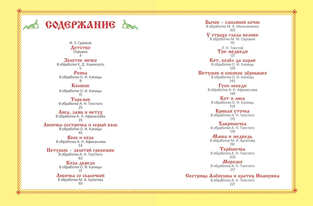 В книгу вошли самые любимые русские народные сказки: "Репка", "Колобок", "Золотое яичко", "Волк и коза", "Теремок", "Лисичка со скалочкой", "Гуси-лебеди", "Хаврошечка", "Морозко" и другие.