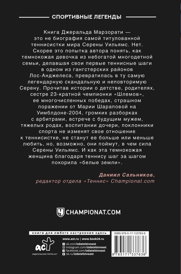 Книга Джеральда Марзорати — попытка понять, какая она, настоящая Серена Уильямс.