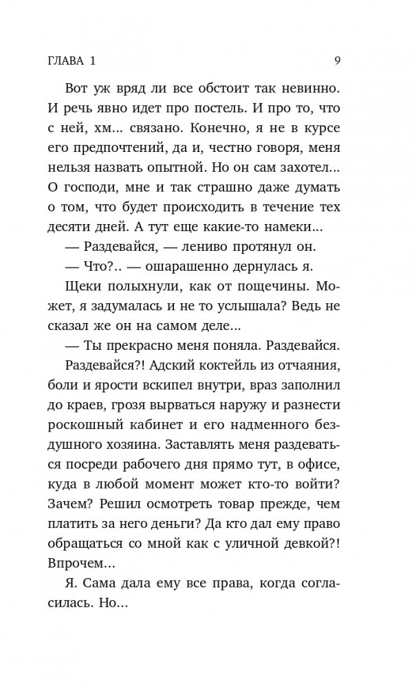 — Десять дней, — сказал он тоном, не предполагающим возражений. — И ни минутой меньше. Десять дней ты будешь в полном моем распоряжении. Я могу делать с тобой все, что захочу. А ты должна беспрекословно подчиняться. Никаких других условий не будет. ⠀⠀⠀⠀⠀ 1800 ВЫСОКИХ ОЦЕНОК. 100 ВОСХИЩЕННЫХ ОТЗЫВОВ. ⠀⠀⠀⠀⠀ Когда-то это был наш дуб и наше место. Кусочек счастья. Чистого, светлого, звенящего. Единственно возможного, правильного. Одни на двоих мысли и чувства, и сердце одно на двоих. Но все изменилось — и меня прежней нет. И Алекса больше нет. Есть чужой мужчина за стеной. Холодный делец, который дал мне деньги, но взамен потребовал принадлежать ему десять дней. И я не питаю иллюзий, мне остается лишь подчиниться.