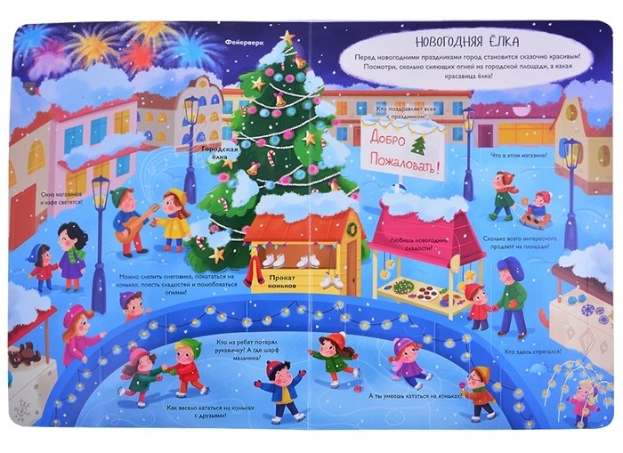 Наступления Нового года ждут все - и взрослые, и дети! Ведь это время чудес, подарков и зимних забав! Давай вместе отправимся в увлекательное новогоднее путешествие - заглянем в мастерскую к Дедушке Морозу, где готовятся подарки для малышей, посетим городскую ёлку, узнаем, какие зимние игры самые весёлые, и наконец встретим праздник дома под бой курантов! Только не забудь заглянуть в окошки- там много интересного!