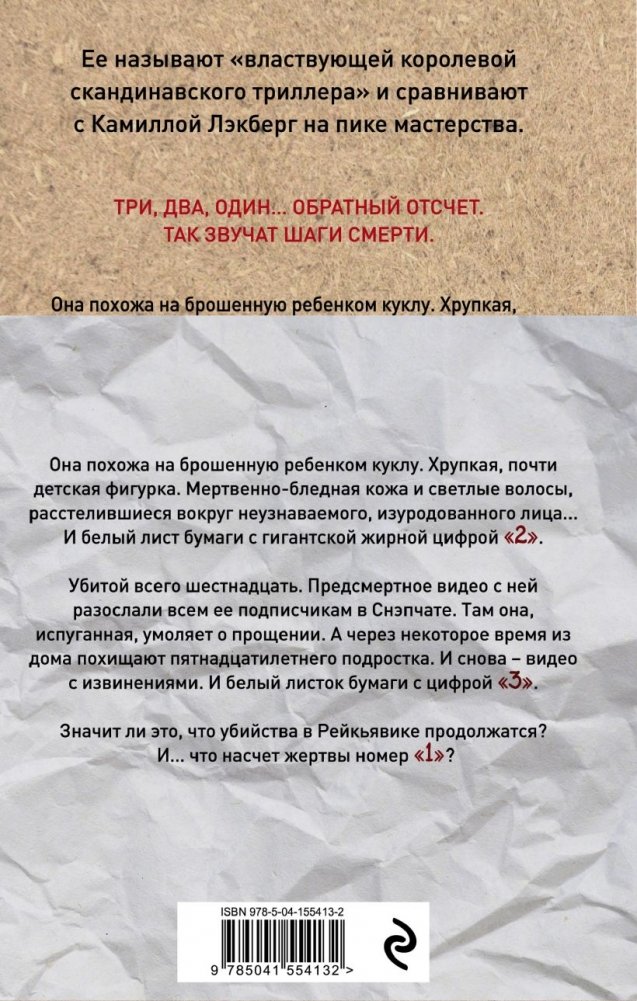 Полиция Рейкьявика расследует похищение шестнадцатилетней девушки. Преступник снял серию видеороликов, на которых зареванная жертва просит за что-то прощения. Эти видео были разосланы через приложение "Снэпчат" всем ее подписчикам. Через несколько дней девушку находят мертвой. Рядом с телом обнаруживается листок бумаги, на котором пропечатана жирная цифра "2". И снова расследование ведут полицейский Хюльдар и детский психолог Фрейя. Они выясняют, что убитая была далеко не таким ангелом, каким ее описывают учителя и подруги. Но кто мог разозлиться на школьницу до такой степени, чтобы решиться на ее убийство? Тем временем прямо из дома похищают пятнадцатилетнего подростка. И снова – серия видео с извинениями, разосланная подписчикам. Как и лист бумаги с цифрой 3, обнаруженный прямо на месте преступления. Значит ли это, что похищения продолжатся? И… как насчет жертвы номер 1?